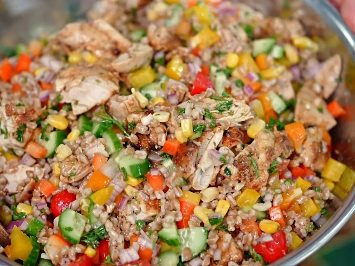 Salade de Farro au Poulet Moutarde Miel à Haute Teneur en Fibres et Protéines Cette salade de poulet moutarde miel au farro, riche en fibres et en protéines, est devenue ma recette préparée à l’avance …