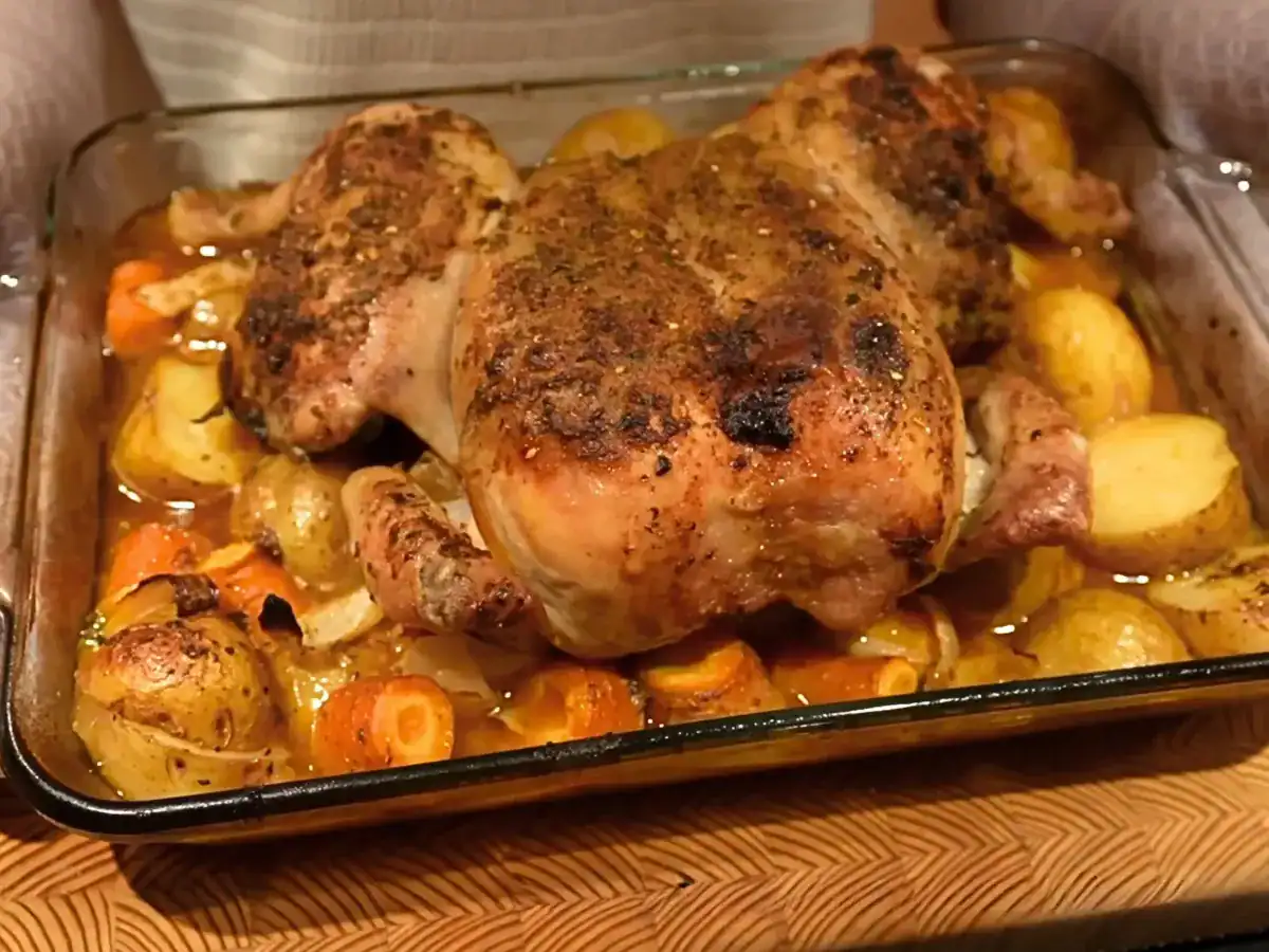 Ce poulet rôti super simple a été notre dîner de célébration d’anniversaire en vacances ! Ce poulet rôti entier classique est couvert d’un beurre à l’ail aromatique et rôti au four en seulement 1 heure …