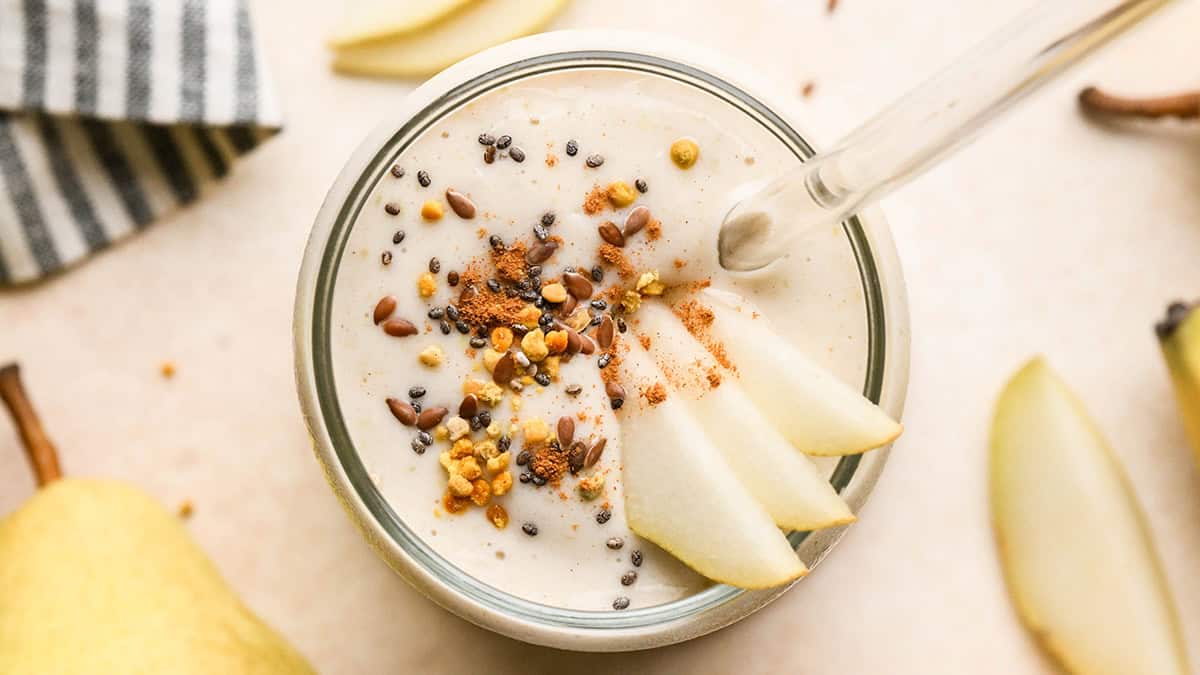 Recette de Smoothie à la Poire Cette recette de smoothie à la poire est simple, composée de 7 ingrédients nutritifs et préparée en moins de 5 minutes. C’est frais, riche en protéines et a le …